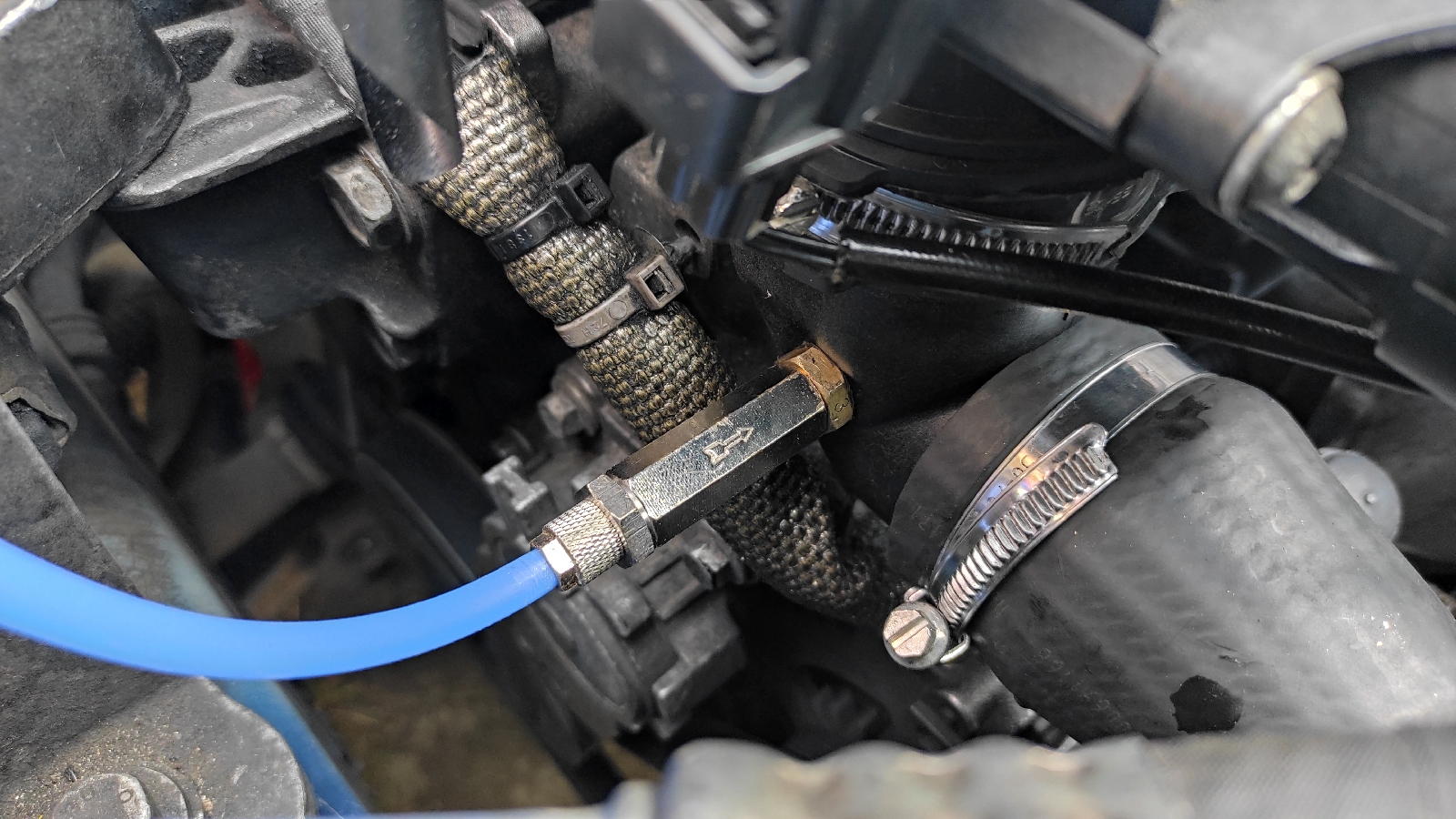 A nyomás kapcsolónak is kellett csatlakozó, a vas turbó csőre "hegesztettem" (ne szóld meg, mert nem ez a szakmám és gyakorlatom se sok van...) egy anyát a leágazáshoz: